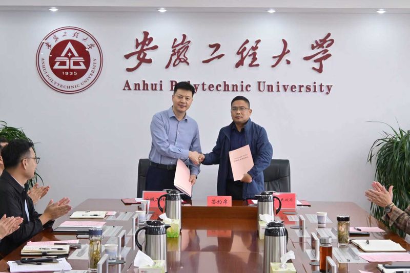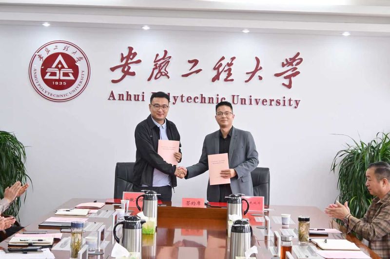 凤权与刘美胜分别代表校地签订了《六安市叶集区人民政府 安徽工程大学战略合作框架协议》;邢剑与王万军签订了《安徽六安叶集经济开发区管委会 安徽工程大学纺织服装学院叶集区纺织服装产业合作协议》。