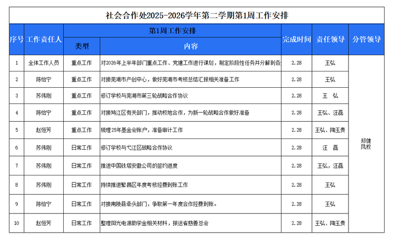 2025-2026学年第二学期第1周工作安排