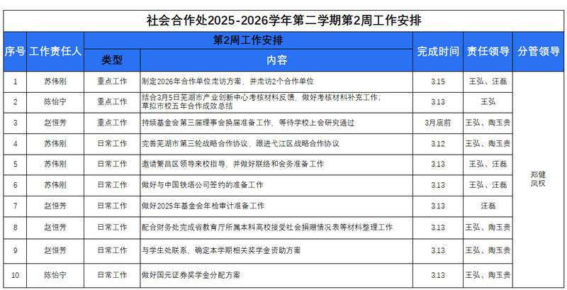 2025-2026学年第二学期第2周工作安排